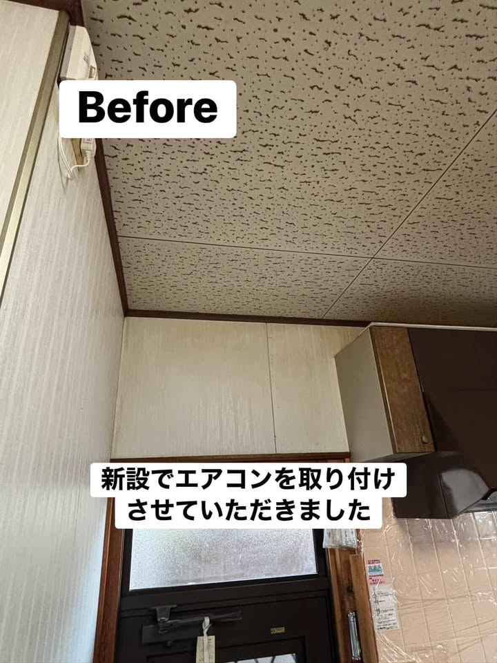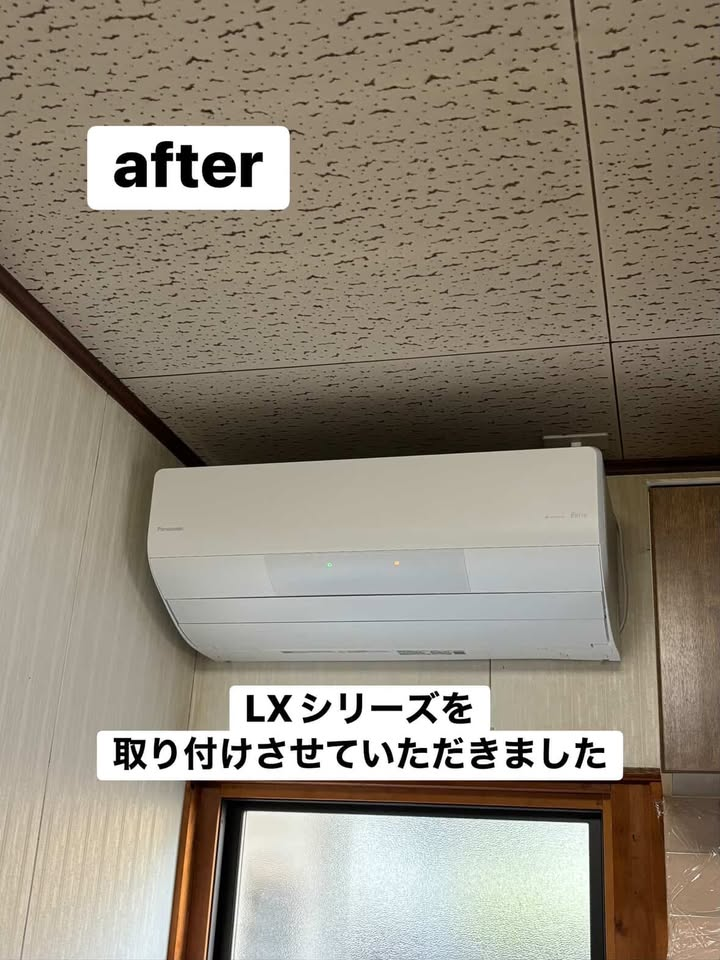 こんにちは、でん助です。投稿を長くできていなくて久しぶりの投稿になります。今回は、台所に新設でエアコンを取り付けさせていただきました。ブレーカーやコンセントも取り付けられてなかったので、電気工事も一緒に行いました。台所なので、長く快適に使用したいとのことでしたので、LXシリーズをオススメさせていただきました。AI機能が搭載されているので人がどこにいるか室温がどれくらいかなど、効率よく快適にお部屋を温かくできるようになりました。足元から温めてくれるので直接エアコンの風が当たらないため直接風が当たりたくない方でもおすすめです。
